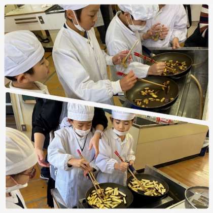 昨日、2年1組のおいもパーティーがありました。みんなで協力して収穫した立派なさつまいもを調理しました。