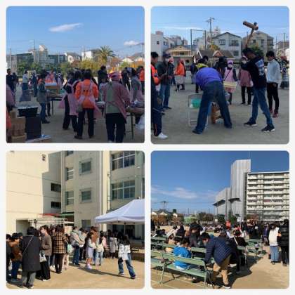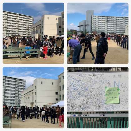 12月3日、日曜日に豊里南小学校でウィンターフェスティバルが開催されました。オータムフェスティバルの時もたくさんの人にお越しいただきましたが、昨日も多くの方に来ていただき、これまでの記録を更新したとのことです。PTAの方はもちろん、本当にたくさんの豊里南地域の方が朝早くからご準備いただきました。