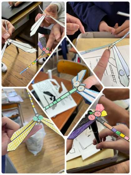 理科の時間を使い、「バランスとんぼ」作りをしました。