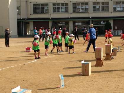 10月27日(火)5時限目に1年生の体育科の授業研究会が行われました。単元は「ボール投げゲーム」の運動。子ども達はチームで協力して準備をして的当てのゲームを楽しんでいました。秋晴れのもと、子ども達は友だちとなかよく一生懸命に授業に取り組んでいました。授業後の討議会では大阪教育大学の赤松先生から「ゲーム」の授業についてのアドバイスをいただきました。