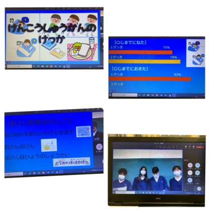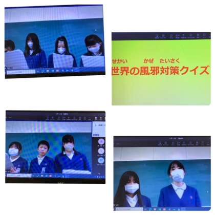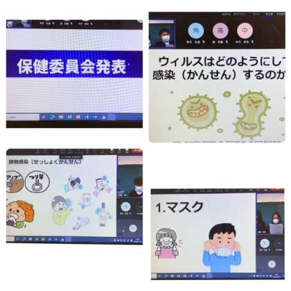今朝の全校朝会では、校長先生のお話は早々に切り上げ、感染症予防について、保健委員会からプレゼンテーションがありました。