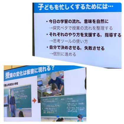 2月の最後の研究授業の時にも、鳴門教育大学の泰山先生にお越しいただきました。子どもたち主体の探究的な学びをすすめていくために、何をどうすればいいのか、みんなで考えました。どのグループでも建設的な意見があがっていて、さすが学校の先生って真面目だなぁとあらためて思いました。