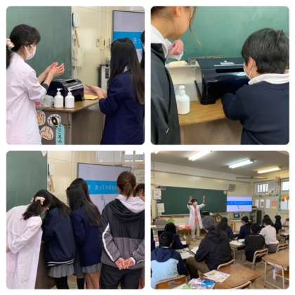 保健委員会児童のプレゼンテーションのあと、学校薬剤師の植平先生から感染症予防についてお話ししていただきました。