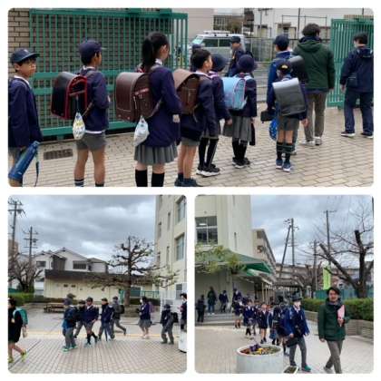 今日は分団会の後、集団下校をしました。それぞれ団長を先頭に一列にきちんと並んで下校していきます。