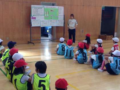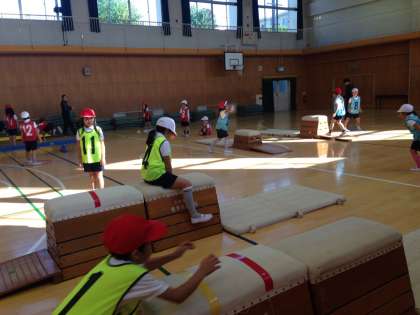 11月4日(水)5時限目に講堂で2年1組の体育科の授業研究会が行われました。単元は「器械・器具を使った運動遊び」。忍者になって平均台や跳び箱に挑戦する運動です。子ども達は友だちにアドバイスをしながら、自分でも一生懸命運動に取り組んでいました。最後に開脚跳びも練習して授業を終えました。準備や後片付けもみんなで協力してできていました。
