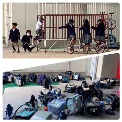 昨日は初日ということもあり、あまり遊んでいる子がいなかったのですが、今日は廊下にたくさんのランドセルが置かれていて、楽しそうな子どもたちの声が校庭に響いていました。