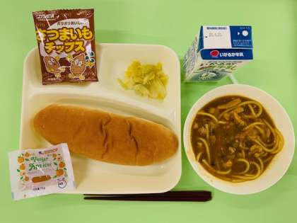 大阪市では、コッペパンの時にジャムやマーガリンなどがつきます。コッペパンの他に、黒糖パン、パンプキンパン、レーズンパン、おさつパンが出ます。