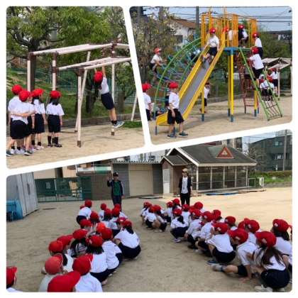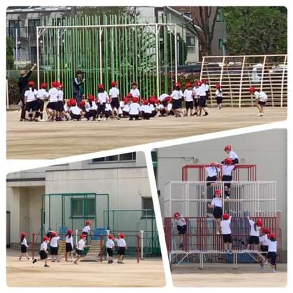 準備運動の後は、広い運動場の遊具を使って、体を動かしました。