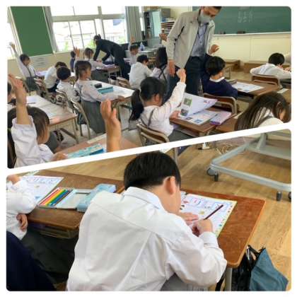 一年生は初めての学習参観でした。たくさんの保護者の皆さんの前で少し緊張気味なのか、普段よりも静かな教室です。