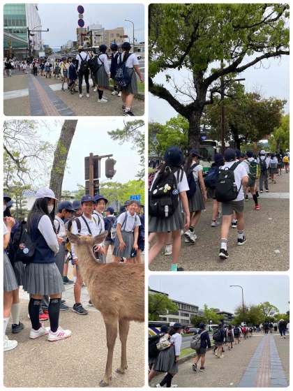 奈良の街並みに、感動する高学年チーム。