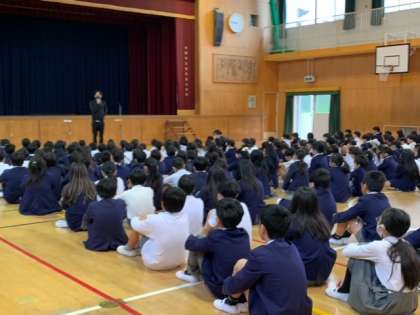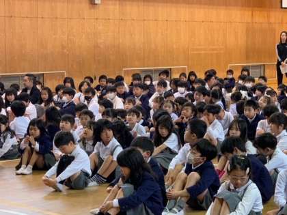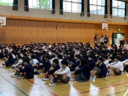 まずは朝の全校朝会で