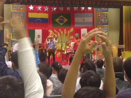 11月11日(水)なかよし学級の子ども達は、視覚特別支援学校で開催された「秋の芸術鑑賞会」に行きました。今年は、ラテン音楽を鑑賞しました。「コーヒールンバ」や「テキーラ」、「コンドルは飛んでいく」などの曲を聴いたり、ラテン音楽で使う楽器を紹介してもらったりして楽しみました。演奏される曲に乗って手拍子やダンスもしました。子ども達の笑顔がいっぱいの芸術鑑賞会になりました。