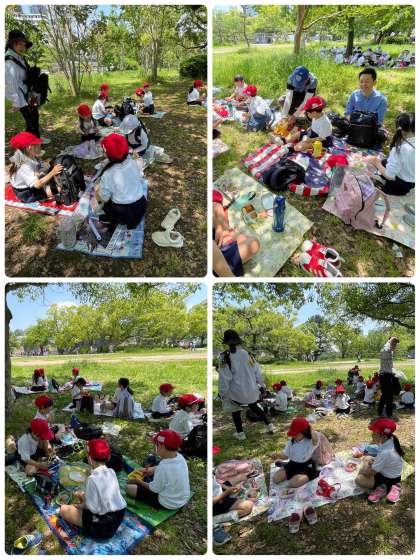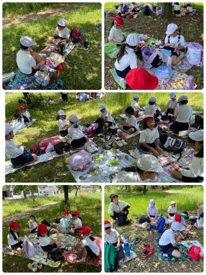 気持ちよく晴れた空のもと、みんなで食べるお弁当は最高です。
