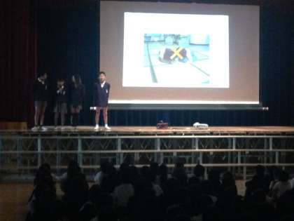 11月12日(木)朝の児童集会は図書委員会の担当でした。図書室に新しく導入されたバーコード機器の使い方や図書室の利用の仕方、ボランティアの方への感謝の気持ちなどをパワーポイントを使って上手に紹介してくれました。最後には昔話についてのクイズもあり、とても楽しい集会になりました。図書委員会の皆さん、ご苦労様でした。