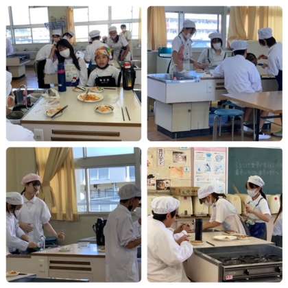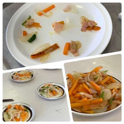 野菜の正しい火の通し方を学んだあとは、自分たちの考えたレシピだったようで、いろいろな個性あふれる野菜炒めが見られました。