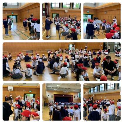 校長先生からは、1年生が廊下を走ったり、チャイムが守れていなかったりする姿が気になります。学校のきまりはみんなが安全に楽しく過ごすためにあるので、しっかり守りましょう。最近は、上級生がよく1年生に声をかけてくれているので、きまりが守れるように上級生のみなさんもよろしくね。という話をしました。