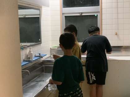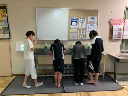 少し早いですが、歯磨きをして、寝る準備です。お疲れモードで、早くも寝落ちしてしまいそうな子も…