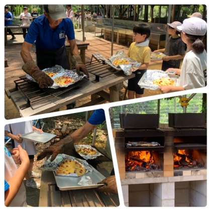 いよいよ窯入れです。薪窯であっという間に焼き上がります。とってもおいしくできました。