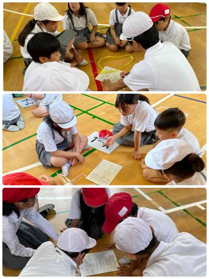 たてわり班で集まり、ミナクルパーティでどの順番でお店をまわるかを話し合いました。