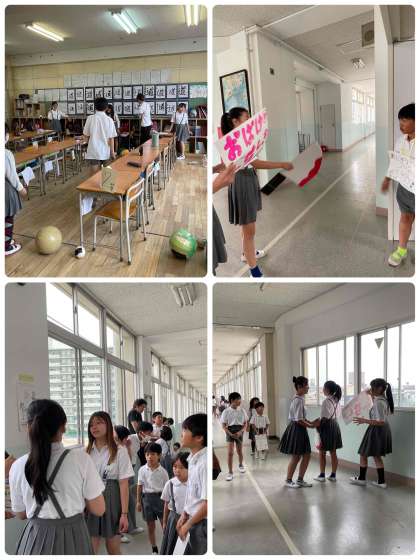 ワクワク、ドキドキしながらたてわり班で協力してお店をまわります。