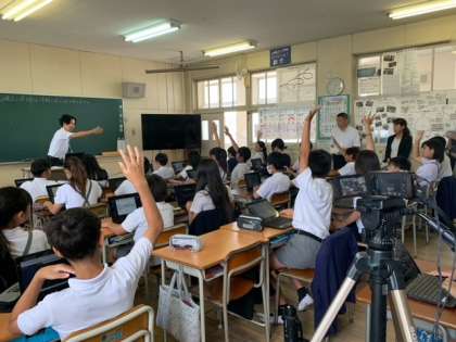 子どもたちは端末を使いこなしながら、よりよい学校にしていくための自分たちの活動について振り返りをしていました。