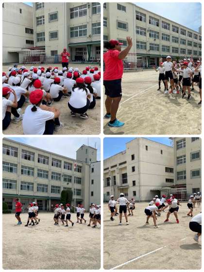 プロのラグビーの選手に来ていただき、出前授業をしていただきました。