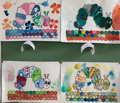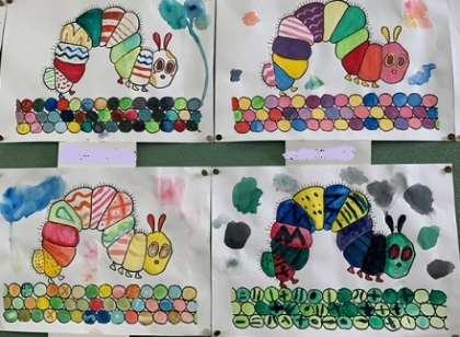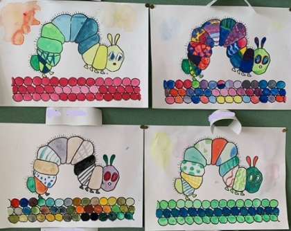 3年生の教室の後ろに、色とりどりのすてきなしゃくとり虫がいます。