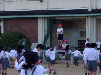 11月30日(月)今日からなわとび週間が始まりました。運動委員会が中心となって全校児童で一時間目の前にいろいろな跳び方に挑戦をします。今日は、初日でしたので子ども達は、前とびやあやとびなどに挑戦していました。なわとび週間をきっかけに日常的に運動する習慣を身に着けてほしいと思います。、