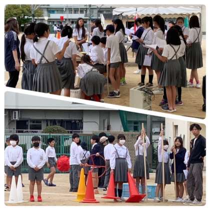 放送担当は実際にマイクを通してアナウンスの練習をしています。決勝担当は実際に走ってみて、ゴールテープをタイミングよく離す練習です。