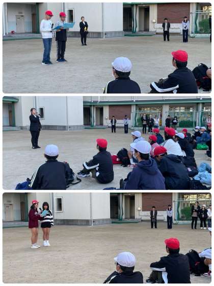 また、今日まで関わってくれた全ての方への感謝の気持ちをもって、気持ちの良いあいさつを心がけて楽しく、思い出に残る修学旅行にしましょう。