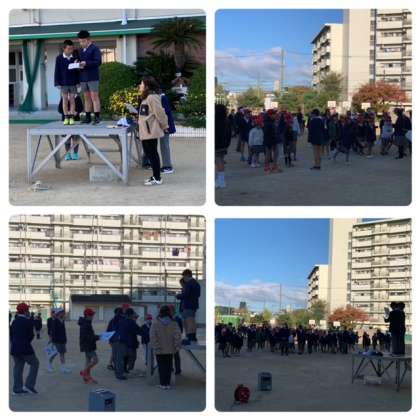 今朝の児童集会は、たてわり班で大縄跳びをしました。1年生には少し難しかったかな。6年生が縄を回しながら優しく教えてあげる場面もありました。