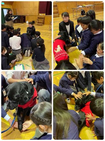 盲導犬とも実際にふれ合い、来てくださった講師の方にいろいろな質問をし、教えていただきました。