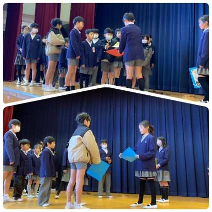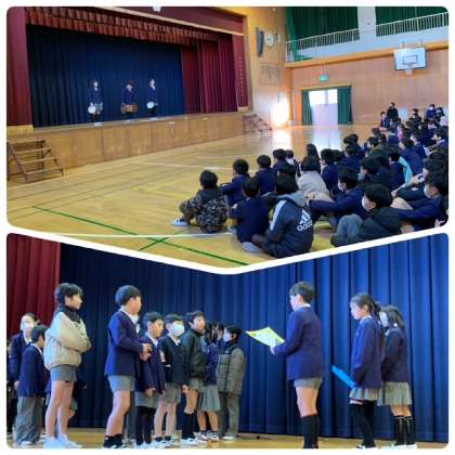 12月に入り、インフルエンザが流行し心配しましたが、なんとか全学級そろっての終業式を迎えることができました。