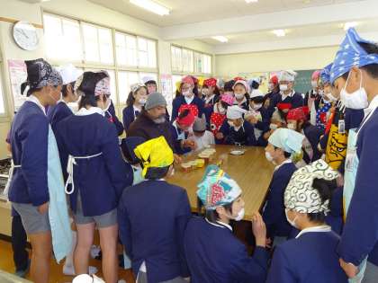 1月15日(金)6年生は、ハウス食品の方に来ていただいてカレー作りを体験しました。その中にはインドから来られた人もいました。はじめにインドの文化やインドと日本の小学校のちがいなどについてお話を聞き、ダーバンなども見せてもらいました。そして、いよいよ調理開始です。スパイスを混ぜ、鶏肉やタマネギの炒めたものを入れて煮込みました。すると、本場のカレーが、すごくおいしくできあがりました。できたカレーを給食のご飯と一緒に食べました。激辛のカレーの味見もしました。インドのことやカレーについてたくさんのことを学ぶことができ、とても楽しい時間を過ごすことができました。