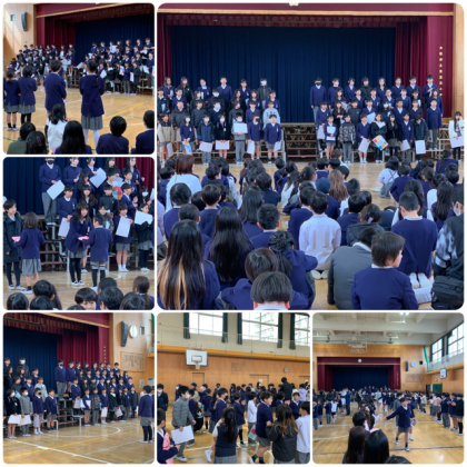 そして、6年生はひな壇に上がって、1年生から順番に代表児童がお礼の言葉を送りました。どの学年も気持ちのこもった言葉でした。