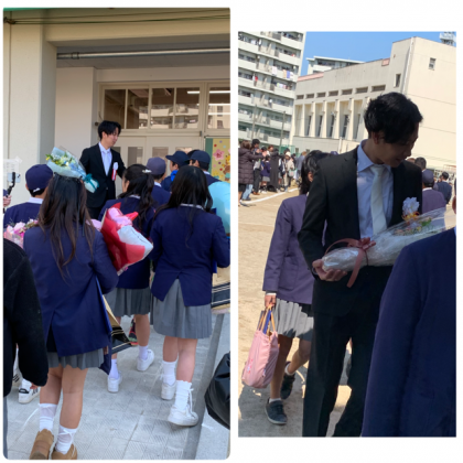 式の終わり、退場する直前には子どもたちから担任の先生たちへのサプライズプレゼントもあり、とてもいい卒業式でした。