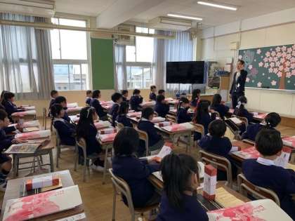 教室では、担任の先生の好きなもののお話に大盛り上がりでした。