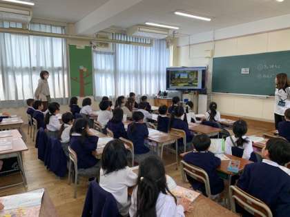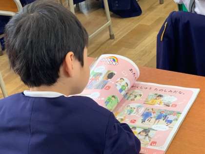 一年生は今はまだスタートカリキュラムで学習をしていますので、本格的な教科学習はまだですが、それでも今日は教科書を開けて、動画を見ながら、学校にはどんなところがあるのかなぁとみんなで考えました。