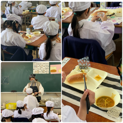 今日に限って、お箸でスープスパゲッティを食べる、お箸を使ってバターをパンにぬるという、なかなか難題でしたが、みんな先生の説明をよく聞いて、上手に食べていました。