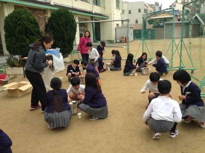 1月28日(木)3、4時限目に3年生は昔の人のくらしを体験するために七輪を使っておもちを焼きました。七輪の使い方に慣れていない子どもたちですが、管理作業員さんにも手伝ってもらって楽しくおもちを焼きました。おもちが焦げたり、ふくらんでくると子ども達は大喜びでした。焼きあがったおもちは、みんなでおいしくいただきました。