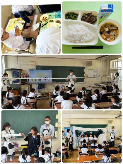 給食時間、牛乳パックの裏を見て、「カルシウム227や!」の声がたくさん聞こえてきました。成長期に必要な栄養素がたっぷり入っている牛乳を、給食でもおうちでも飲んでほしいなと思います。