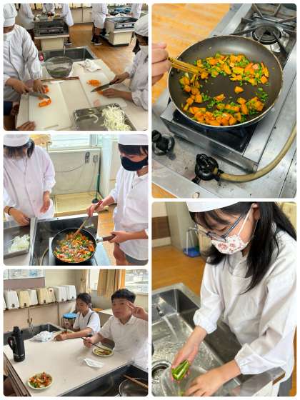 6年生になって初めての調理実習は、野菜いためです!