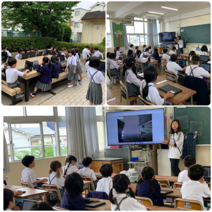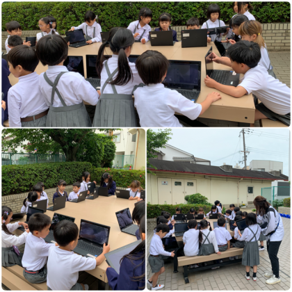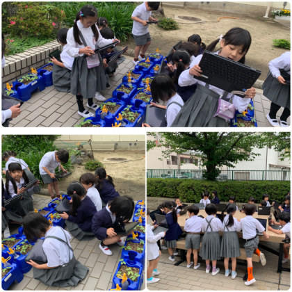 一年生が先週使い始めたばかりの学習用端末を使って、早速アサガオの観察をしています。
