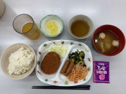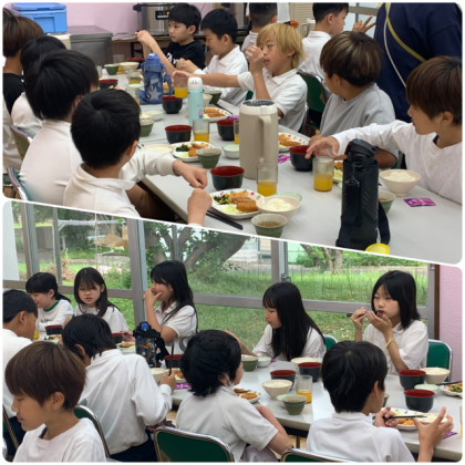 ちょっと、トラブルがあって先生から叱られましたが、みんな元気で朝ごはんです。
