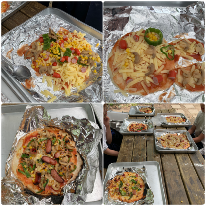 ハート型にウサギ型など、個性的なピザも続々登場。窯で焼いてもらって、焼きたてをおいしくいただきました。