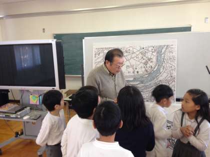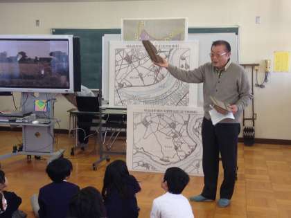 2月4日(木)4時限目、3年生は地域に住んでおられる野畑一雄さんから豊里南地域の昔の様子についてお話を聞きました。昔の豊里南地域の地形、淀川の様子、くらしぶり、子どもの遊び、学校生活の様子などについて地図や写真,当時使われていた道具などを使ってわかりやすく説明していただきました。終わってからも子ども達は野畑さんにたくさんの質問をしていました。わたしたちの地域のことがよくわかりました。本当にありがとうございました。