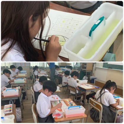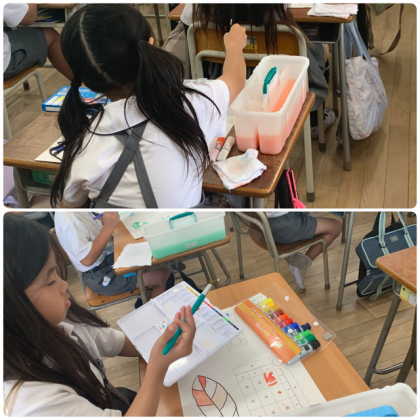 しっかりと先生の話が聞けている子は素早くどんどんと塗り進めています。
