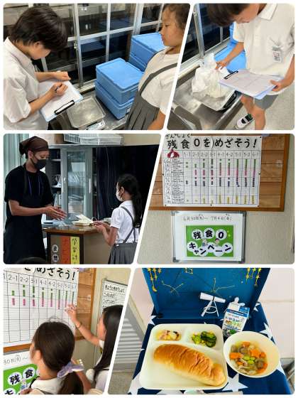 6月30日〜7月4日までは、残食0キャンペーンでした。これは、豊里南小学校の食品ロスを減らすため、ひとりひとりが意識して、一口でも食べてみようという取り組みです。