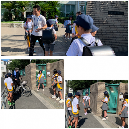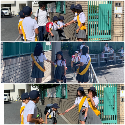 今週は、あいさつ週間ということで、毎朝、児童会の子どもたちが正門に立っています。