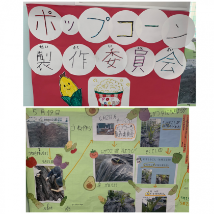 児童会の委員会活動とは別にポップコーン製作委員会と野菜栽培委員会が発足しています。